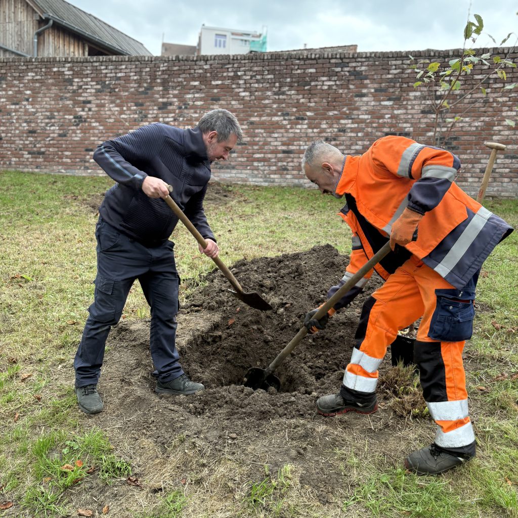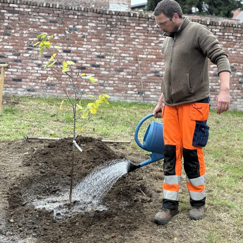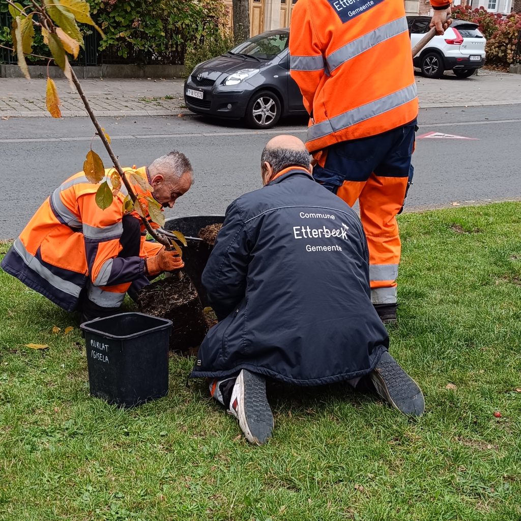 Grâce à la mobilisation rapide et formidable des jardiniers et ouvriers communaux d’Etterbeek, avec la collaboration du Bourgmestre et des Échevins, ainsi qu’une collecte généreuse des ouvriers, 10 arbres fruitiers ont trouvé leur place :